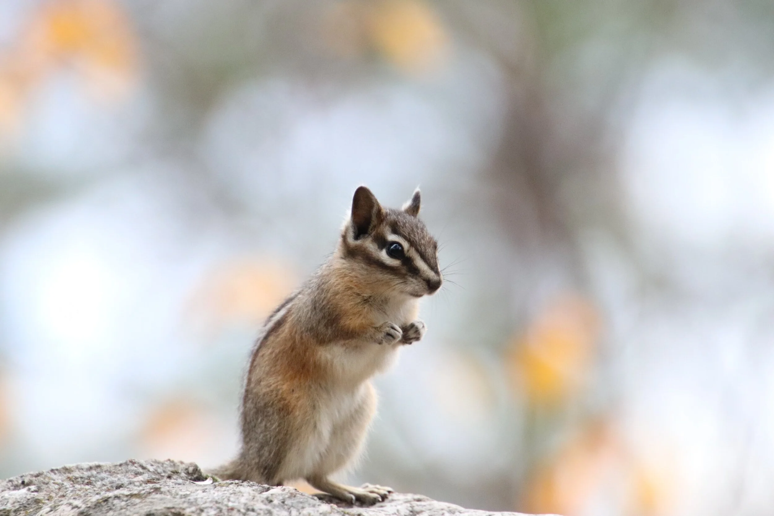 Yellow-pine chipmunks are found in western Montana and Wyoming, and in mountainous areas of California. They live in brush-covered areas, coniferous forests, rocky outcrops, and logs. Yellow-pine chipmunks are dark and reddish, mixed with cinnamon.